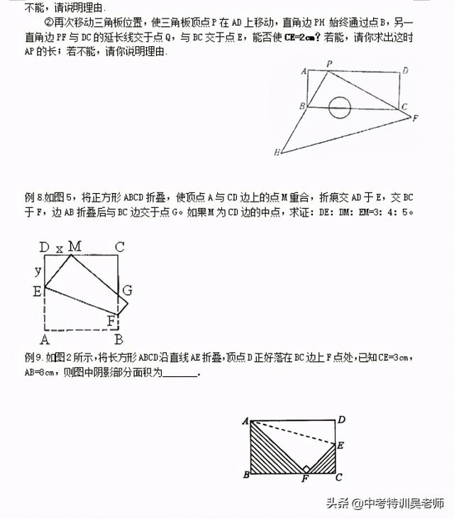 例9.如图2所示,将长方形ABCD沿直线AE折叠,顶点D正好落在BC边上F点处,已知CE=3cm,AB=8cm,则图中阴影部分面积为_______.