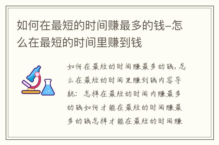如何在最短的时间赚最多的钱,怎么在最短的时间里赚到钱