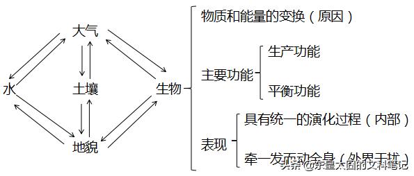 1、地理自然环境因素:大气、水、岩石、生物、土壤、地形……