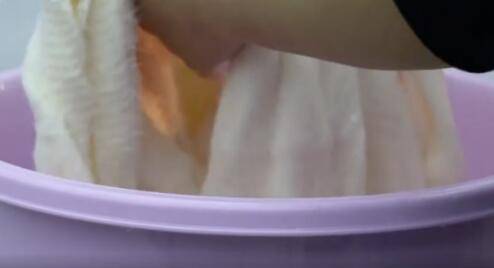 3、将兔毛衣物浸泡于盆中,用手轻轻漂洗避免揉搓。