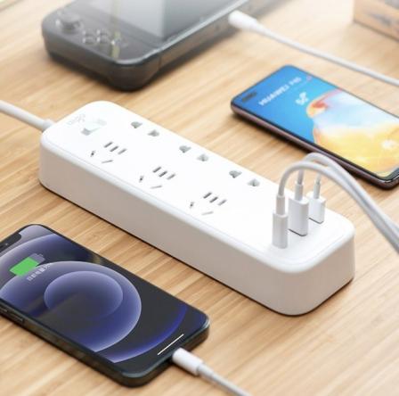 如果魔方还不足以满足你的话,aigo AC0631六位延长线插座才是真正需要的多功能插座! 作为延长线插座,提供3个5孔插座、3个2孔插座,可以移动桌面上的所有设备。 不仅如此,它还提供了一个USB-C接口和两个USB-A接口。 C端口65W输出是电脑功能,告别笔记本电脑的电源。 A端口最高18W输出,快速恢复手机电量,满足你不同设备的充电需求!