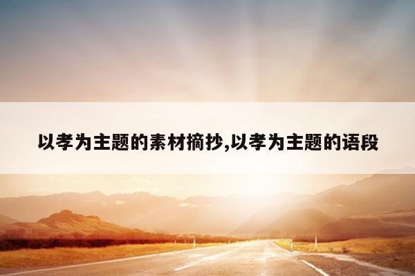 1、妈妈的呵护,跨过时间的长河,一直陪伴在身旁;妈妈的关爱,穿过空间的阻隔,一直回响在耳旁。以上内容就是我为大家找来的关于孝的素材,希望可以帮助到大家。