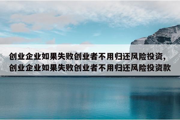 创业企业如果失败创业者不用归还风险投资,创业企业如果失败创业者不用归还风险投资款